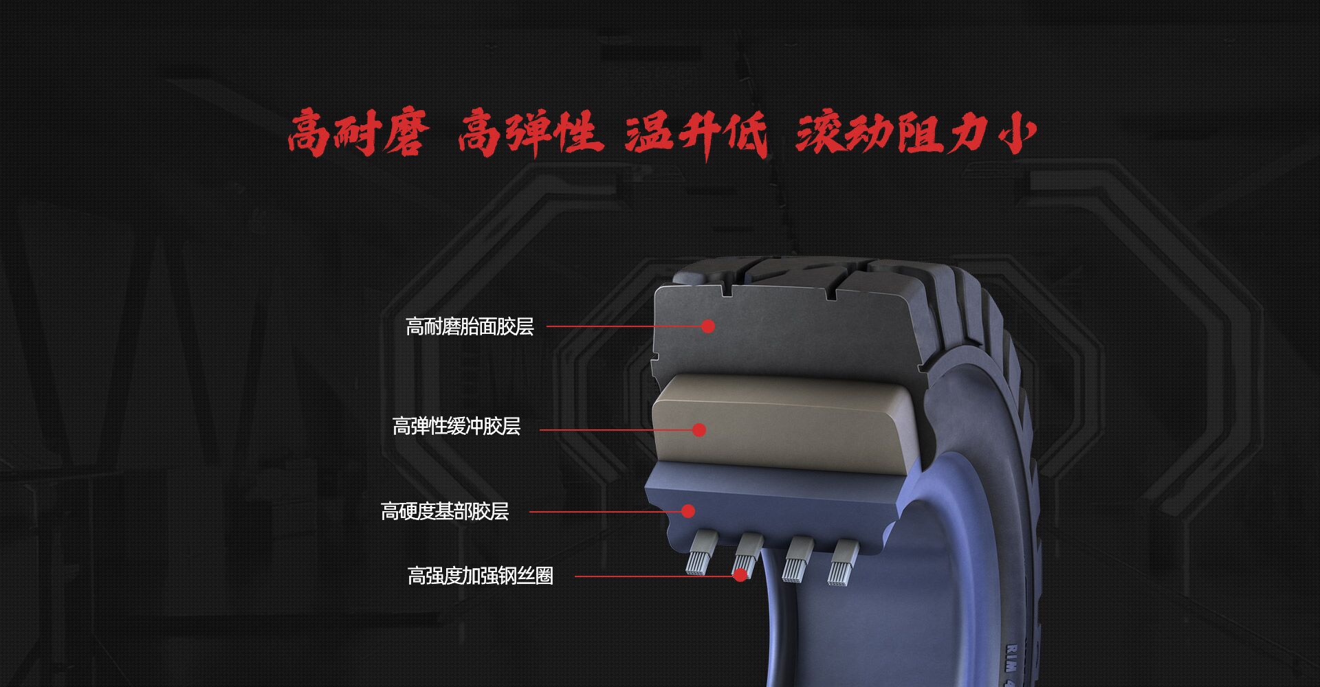 實心輪胎主要適用于地面復(fù)雜惡劣工況下的叉車、拖車、裝載機、軍用車輛等機械車輛的配備,廣泛應(yīng)用 于鋼鐵廠、礦山、建筑工程、港口、物流、廢金屬加工廠等領(lǐng)域。 實心輪胎胎體為全橡膠構(gòu)成,最大限度地保證了輪胎的耐刺穿性,從根本上消除了工業(yè)車輛在承載運行過 程中及在惡劣的作業(yè)環(huán)境中的輪胎刺穿隱患。實心輪胎的負荷—形變量小、運行穩(wěn)定性好,因其耐刺耐撕、耐 高溫、耐腐蝕、耐磨損,無需充氣,避免了頻繁補胎換胎的繁重勞動,可提高車輛的使用率和工作效率,在低 速、高效運行車輛
